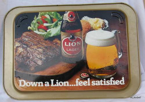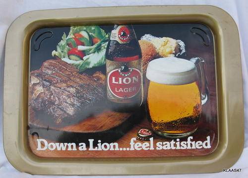 LION LAGER : METAL TRAY : 44.5x30.8cm : Down a Lion...feel satisfied