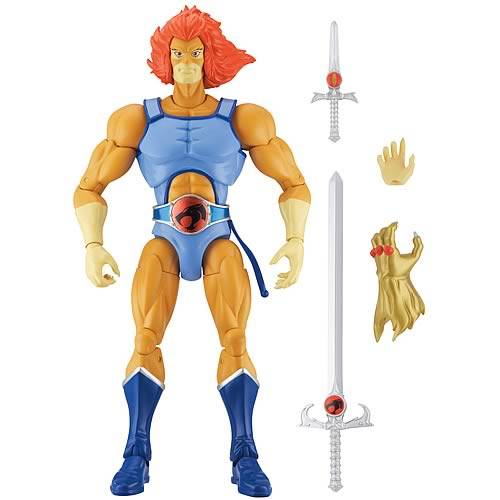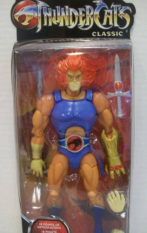 The Lion-O figure includes: a long Sword of Omens, a short Sword of Omens, Gold Claw Shield and two extra interchangable hands. The Lion-O figure has 18 points of articulation, which is great for display purposes. (Please see pictures above &below)