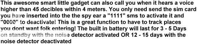 Listen in from anywhere in SA with this Tiny Spy Ear or have it phone you automatically!!