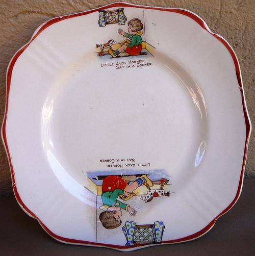 This cute plate 'Little Jack Horner sat in a corner' is stamped Kensingtonware KPB England B. It is in good condition with no chips or scratches. It measures 165 mm x 165 mm and weighs 181 grams.