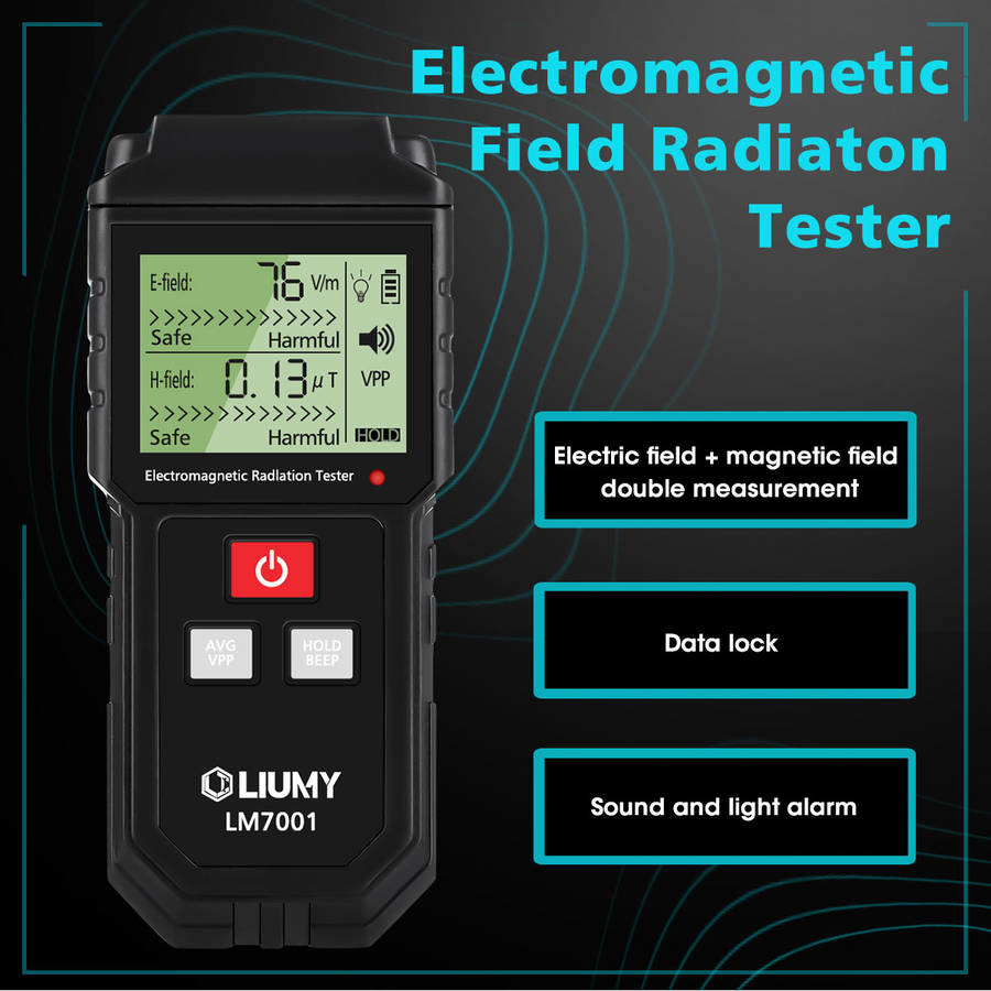 LIUMY EMF Detector can test electric field radiation and magnetic field emission to reach the optimal test result. It's widely used to test and learn electromagnetic radiation situation indoor and outdoor: a Electromagnetic radiation monitoring: Household and appartment, office, outdoor and industrial site; a Electromagnetic radiation test: Mobile phone, computer, TV set, refrigerator and high voltage cable radiation test; a Radiation protection product test: Test effects of radition-proof clothes, Equipped with a built-in electromagnetic radiation sensor, which can display the radiation value on the clear LCD digital display after processing by control micro-chip.