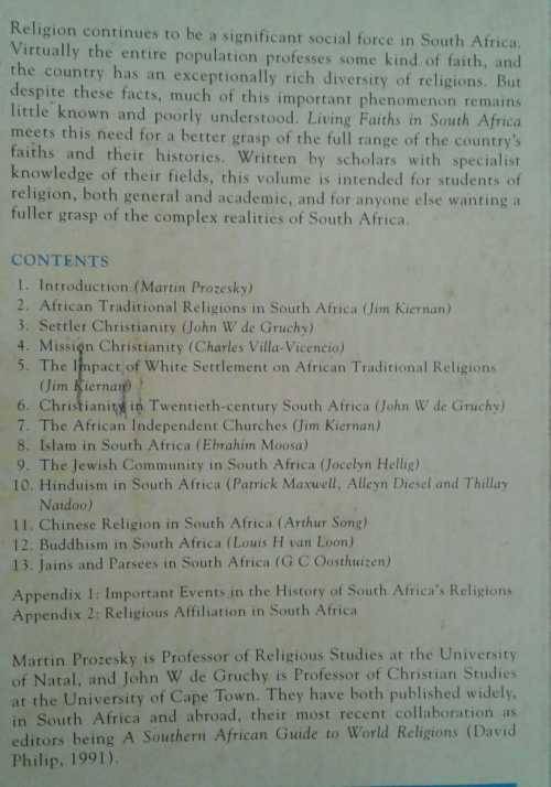 Living Faiths in South Africa edited by Martin Prozesky and John De Gruchy