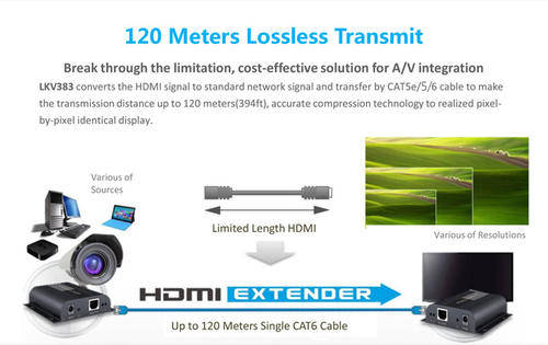 â 120m / 394ft HDMI Extender over IP with IR pass-through