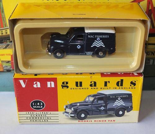 You are bidding on a LLEDO VANGUARDS 1/43 VA11010 MORRIS MINOR VAN MAC FISHERIES MIB. These are original models made at the English factory years ago. Every month they would send me the two latest models released. They are well crafted models. I have taken many photos to give an accurate description, if you have any questions I will be happy to answer them. I do combine postage on multiple items to help on postage costs. ***Happy bidding***