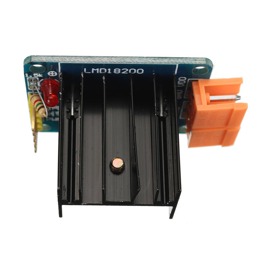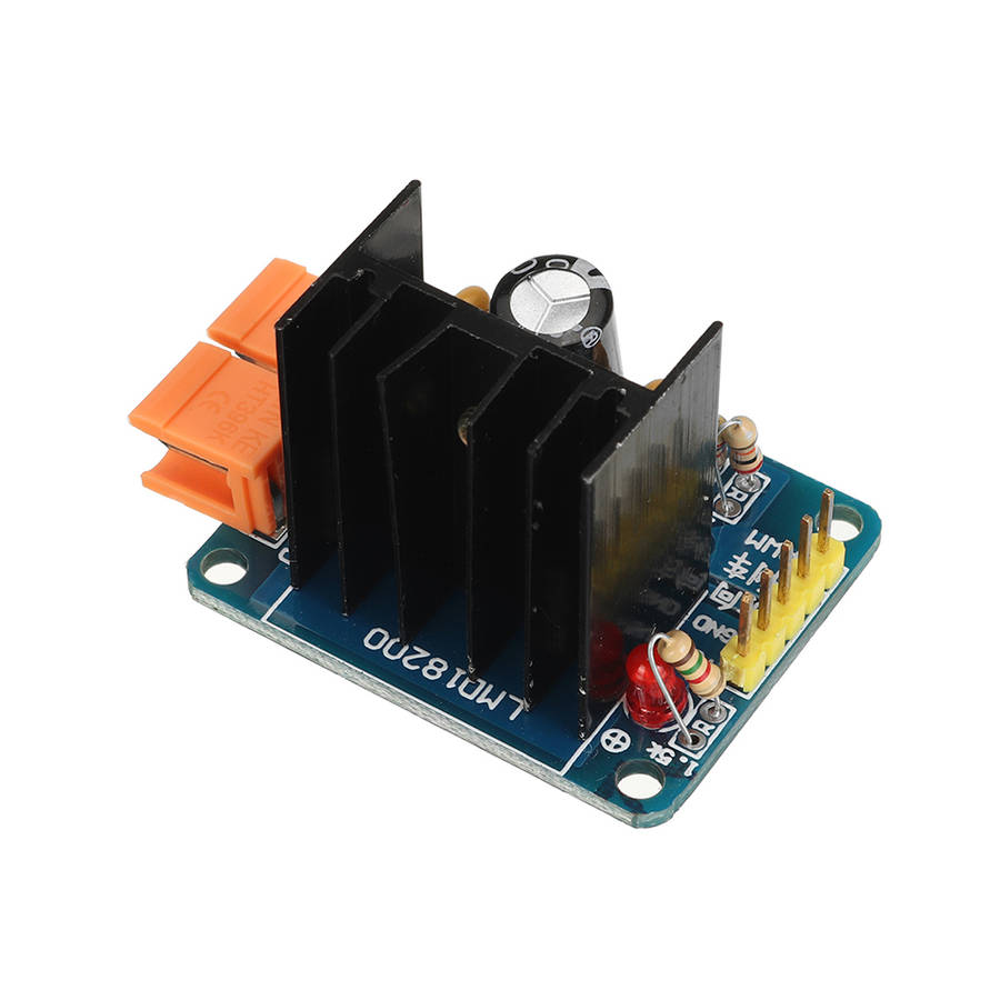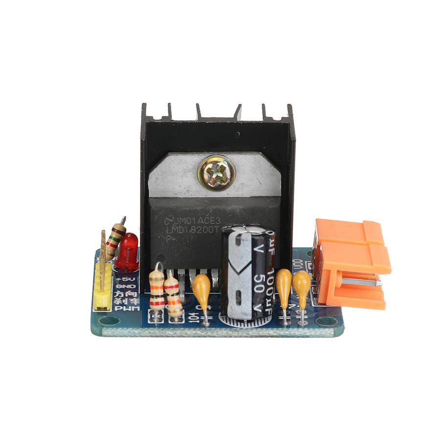 Description: This drive module adopts the full H-bridge drive module composed of the DC motor H-bridge dedicated drive chip M18200T launched by the National Semiconductor Corporation of the United States, which has strong driving and braking effects, and the maximum current is 3A! Features: 1. With power indicator 2. Adjustable speed 3. Strong anti-interference ability 4. With continuous current protection 5. A DC motor can be controlled separately 6. PWM pulse width smooth speed regulation 7. can realize forward and reverse 8. Strong driving ability and powerful braking effect Parameter: Main chip: LMD18200 Working voltage: control signal DC 4.5~5.5V; drive motor voltage 10.5~30V Can drive DC (motor with voltage between 10~30V) Maximum output current: 3A (instant peak current 6A) Maximum output power: 75W Size: 31.5mm x 37.5mm Package included: 1 x Driver Module
