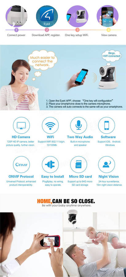 LOCAL STOCK - VStarcam C7824WIP 720P Wireless IP Camera Audio