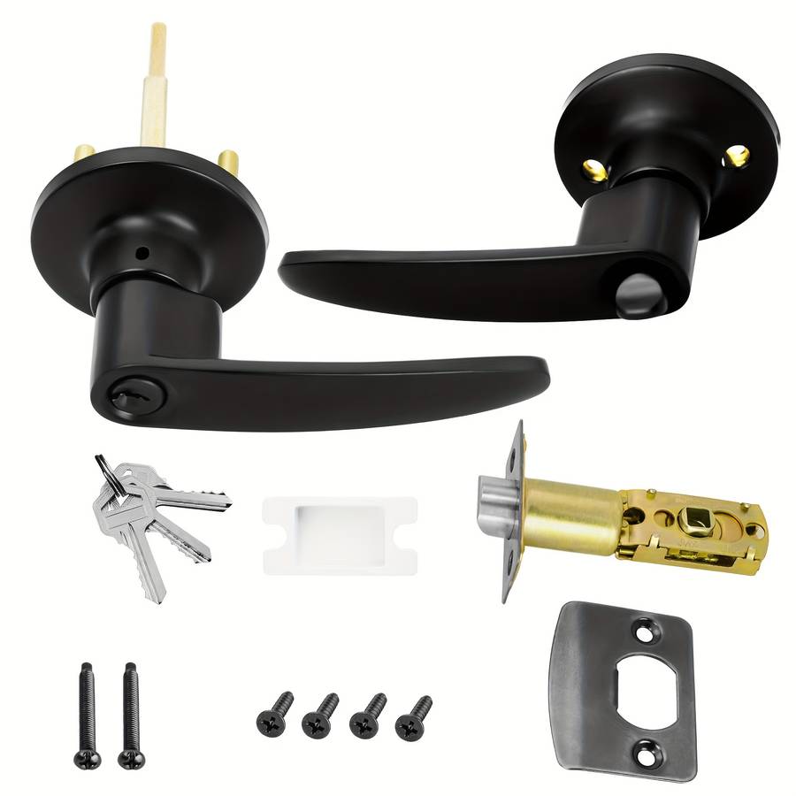 Lock Color Black color Black: ᄀᄒSpecifications are subject to this detailᄀ One set of door locks, with three keys, aluminum alloy hanging plated three-bar Finish Type:Varnished Material:Metal Power Supply:Use Without Electricity Lock Body Specifications:Universal Battery Properties:Without Battery