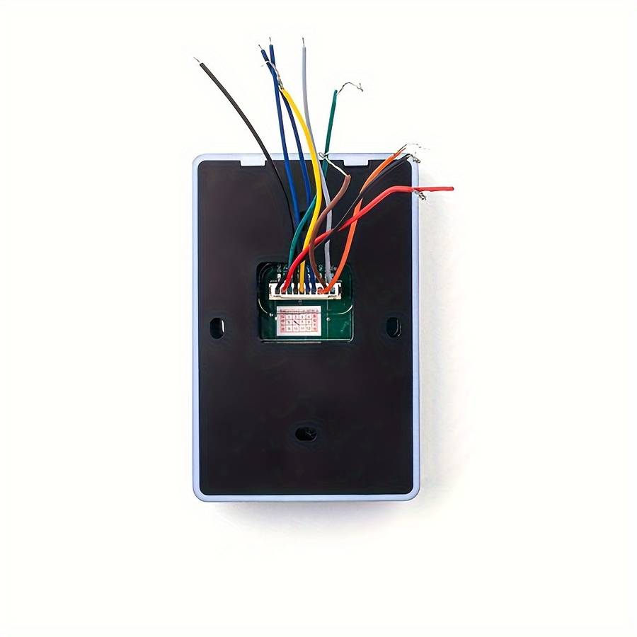 Specifications for the parameter settings: The device operates with a voltage and current range of DC 9-12V, consuming less than 100mA, with a minimum requirement of 20mA. It supports three door opening modes: password, card, or a combination of card and password. The device has a capacity for 1600 cards, 128 groups of passwords, or 32 groups of cards with passwords. The swipe speed is less than 0.1 seconds, and the swipe distance ranges from 1 to 5 centimeters. The product dimensions are 115X75X18MM. The default programming password is 123456. It can operate in temperatures ranging from -40 to 70 degrees Celsius, with an industrial-grade design that can withstand temperatures up to 85 degrees Celsius.