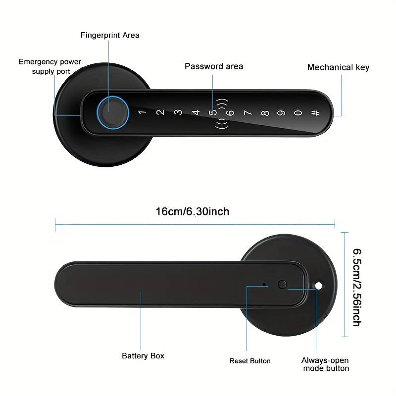 Lock Color Black color Black: ᄀᄒSpecifications are subject to this detailᄀ 1pc Smart Door Lock with 5 Unlocking Methods (Fingerprint/Password/Card/Key/IC/A Power Mode:Battery Powered Operating Voltage:기36V Battery Properties:Without Battery Major Material:ABS Lock Body Specifications:Universal Connectivity Technology:Wireless