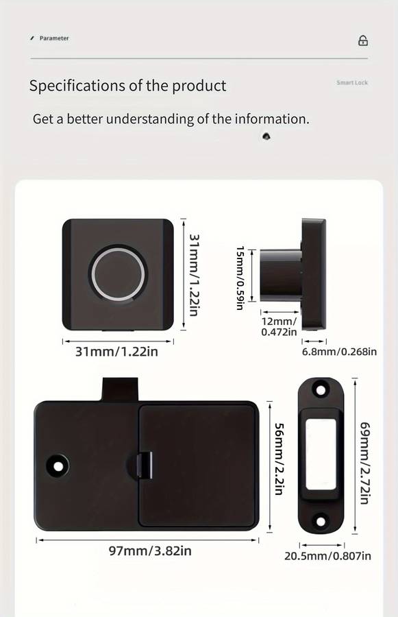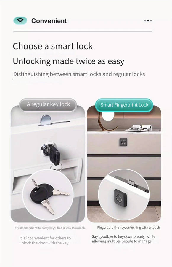 Smart Drawer Lock - Biometric Security for Home and Office Cabinets, Shoe Racks