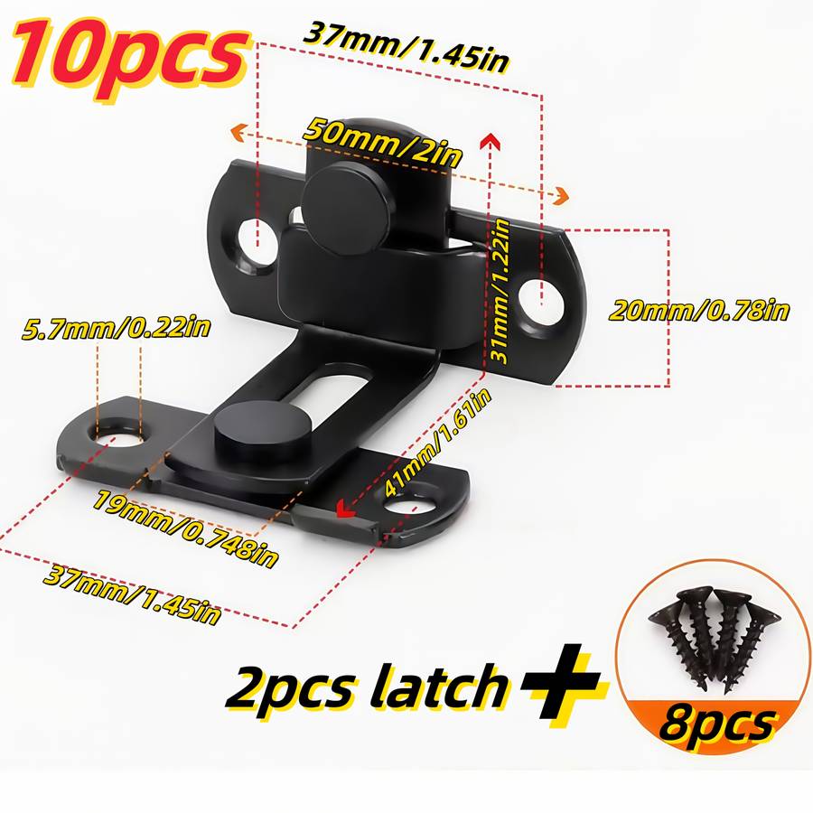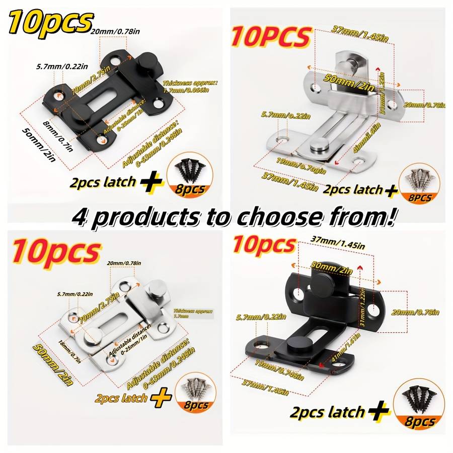 10pcs Stainless Steel Door Latches with 8 Screws - 180ᄀ ̄ & 90ᄀ ̄ Flip Barn Lock for