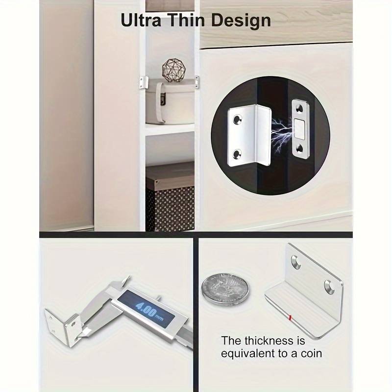 Lock Quantity 32Pcs Quantity 32pcs: ᄀᄒSpecifications are subject to this detailᄀ Set of 32 Ultra-Thin Magnetic Door Locks, 32pcs Contains 4pcs Magnets + 4pcs L-S Metal Finish Type:Brushed Material:Metal
