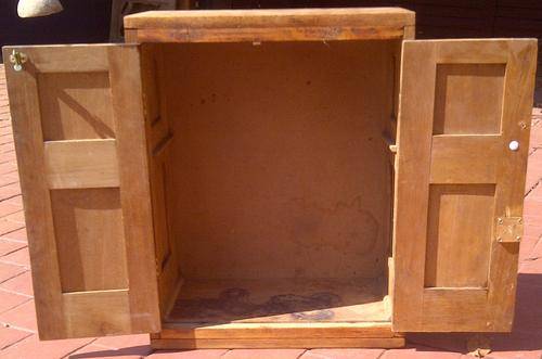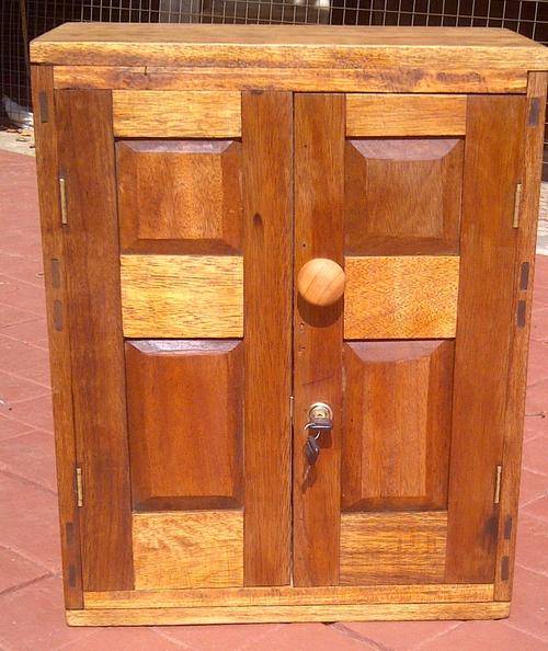 Beautiful lockable Teak cupboard, perfect for a bathroom cabinet, office use, liquor cabinet... uses are endless. Could be mounted against a wall are placed on an existing flat surface.