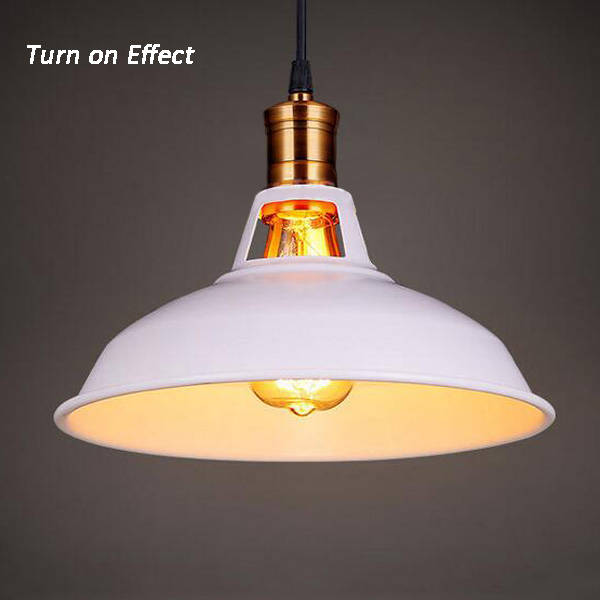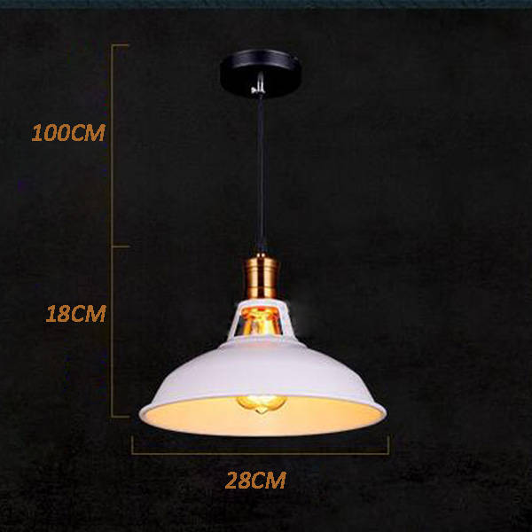 Package weight: 0.90 kg Specifications: Connector:E27 Voltage:AC110-240V Max.Wattage:60W Color:Black/White Style:Vintage/Creative Material:Iron Dimension:28cm(Diameter)*18cm(Height)*100cm(Pendant Chain) Pendant Chain:Can be adjustable Lighting Area:10-25 Square Meter Applications:Restaurant, corridor, study, hotel rooms, living rooms, etc Note: 1.Due to the difference between different monitors, the picture may not reflect the actual color of the item. 2.Please allow 1-3mm errors due to manual measurement. Package Included: 1 X Pendant Light(Bulb is not included)