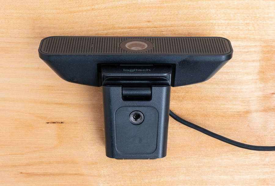 It can be mounted on top of your screen or it can free stand on its own base and it also has a tripod mount thread in the base.