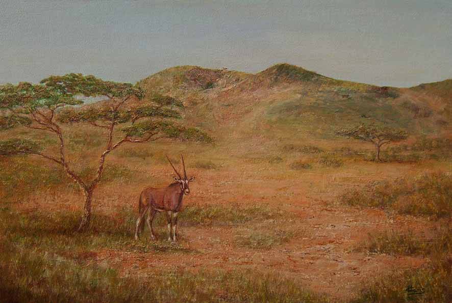 Lone Gemsbok, oil on canvas board, 600 x 400 mm