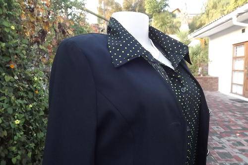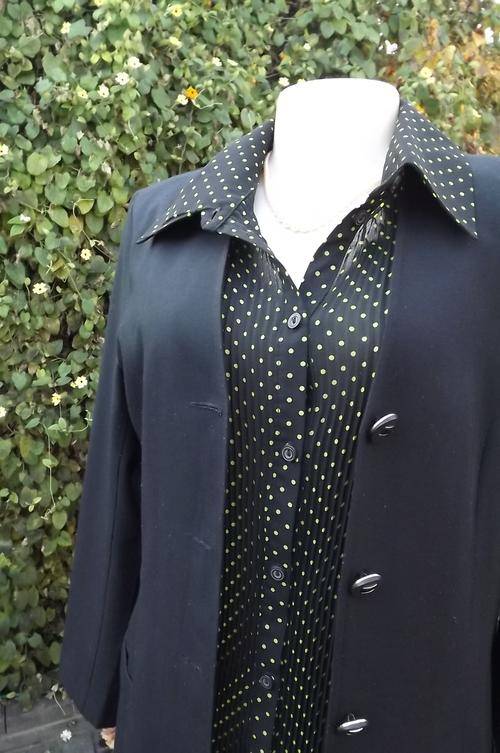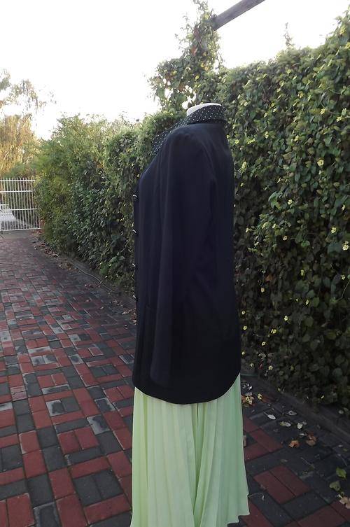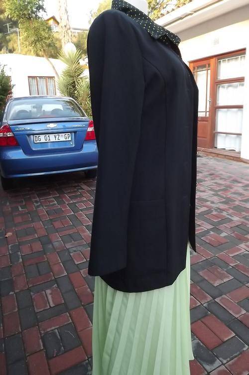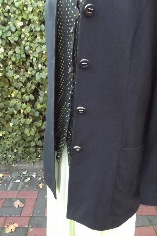 Long black tailored collarless jacket beautifully styled by Daytimers size 32/8.The office to dinner
