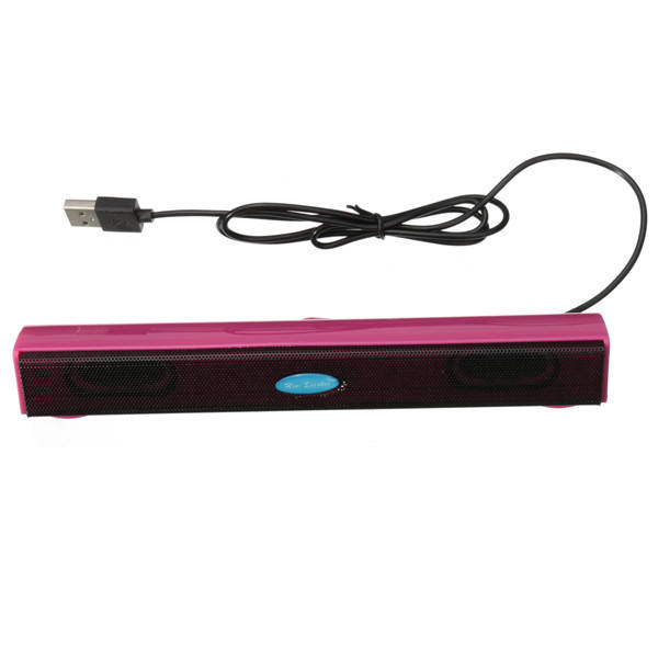 Features: Use of personal computers, desktop computers, tablets, mobile phone, games, etc. USB plug-and-play No need to install a driver Specification: Material: ABS + iron Power supply: USB data cable to connect the power supply (5V 500MA) Output power: 2W x 2 Size: 200 x 28 x 27mm Cable length: 50cm Color: Blue, Gold, Green, Rose, Yellolw Package Included: 1 x Upgrade Portable Mini Bar Speaker Detail Pictures: