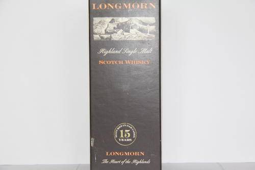 Longmorn Highland Single Malt 15 year Scotch Whisky in Collectors Box 750ml. Alcohol 45%. Longmorn is produced at Longmorn Distillery in the deepest part of the Scottish Highlands.It is firm in flavour,but smoothed by age.This is a Collectors item and comes in a Collectors Box. Although bottle is unopened and sealed and in excellent condition buyers must understand that the item is over 10years old having formed part of a collection and Box has very slight imperfections.Bottle and contents however are perfect having been stored in the Box.