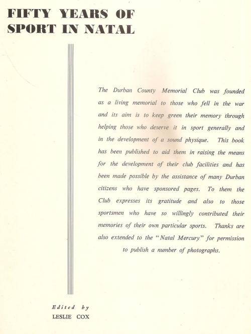 Fifty Years of Natal Sports and Sportsmen 1900 A.D. - 1950 A.D. Ed. Leslie Cox ***Scarce Copy***
