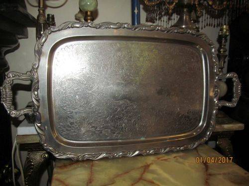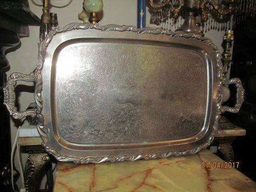 ANTIQUE (LATE 1800's) SILVER PLATED BUTLERS TRAY - ORNATE HANDLES AND BORDERS + ENGRAVED PATTERNS