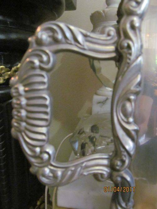 WITH ELEGANCE IN MIND AN ORNATELY DETAILED BORDER HAS BEEN CRAFTED WITH SWIRLS AND LEAVES IN A CAPTIVATING RAISED FASHION, AND THE HANDLES HAVE NOT BEEN LEFT WANTING AS THEY TOO HAVE BEEN CAREFULLY DECORATED IN AN ORNATE MANNER TO MERGE HARMONIOUSLY WITH THE REST OF THE ITEMS BEAUTY