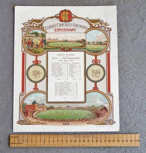 LORDS CRICKET GROUND CENTENARY 1914 game poster - Scarce item