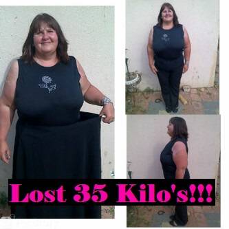 Lientjie Swart: Ek het 10 junie begin en staan nou op -14 kg en 92 cm as ek nie tussenin gekroek het nie sou dit seker meer gewees het. Ek moes Des vir n knie vervanging gaan maar ek het afspraak ge kanseleer aangesien die knie nie meer pla nie.