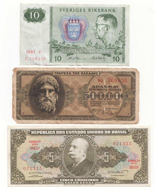 Lot of 10 old international banknotes - as per scan