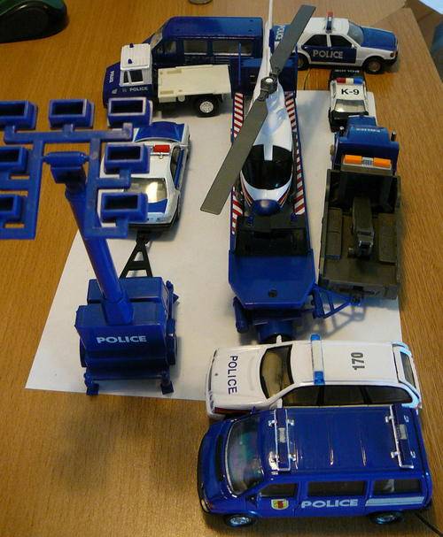 Up for sale are 10 VARIOUS POLICE TOYS, all unboxed