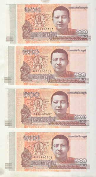 Lot of 100 Cambodia 100 Riel banknotes with consecutive numbers - uncirculated - 2014 issue