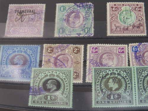 Lot of 12 Natal, Orange River Colony, Transvaal and Cape Of Good Hope Revenues stamps