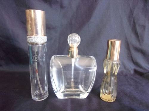 Lot of 14 vintage scent/ powder bottles for 1 bid. I would date these scent/ powder bottles to between the 1920s - 1970s. The lot includes a "Golden Morn Talcum Dubarry" bottle which I think is an uranium glass bottle. The other bottles include a White Diamonds bottle, a Poeme bottle, an Estee Lauder Youth Dew bottle, a Far Away Eau De Parfume bottle, a Noa bottle, a Yves Saint Laurent bottle, an Espace bottle, a Magie Moire bottle, a Prince Matchabelli bottle, a Paloma Picasso bottle, an Evening in Paris bottle, a shiny bottle Made in Western Germany and an unknown bottle. They are all empty, but in good condition. Great buy for the collector.