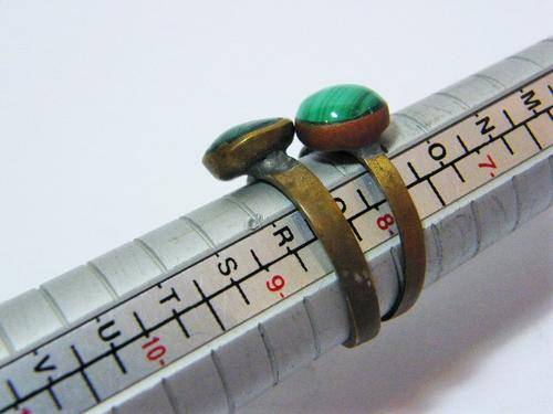 Lot of 19 vintage brass & malachite rings - assorted sizes - as per photo