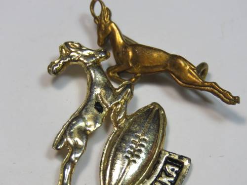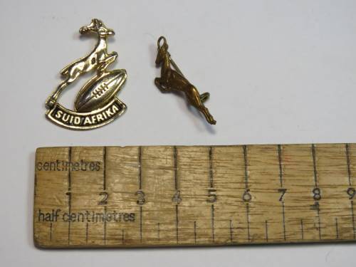 Lot of 2 SA Rugby Springboks pin badges - One is missing a pin
