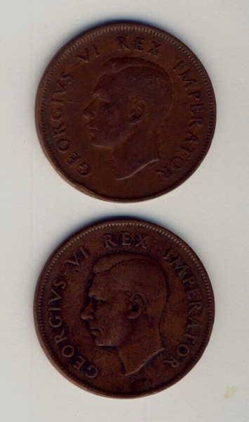 Lot of 2 variations of 1940 SA Union Pennies - No dot to right of date - @ Crazy R1 start