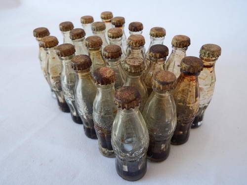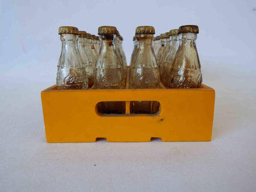 Lot of 24 vintage mini coke bottles with mini Coca-Cola crate - as per photo