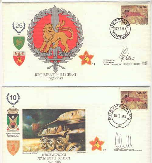 Lot of 26 SA Army  FDC's commemorating 25 years 1962 - 1987 - signed by officers commanding -