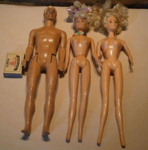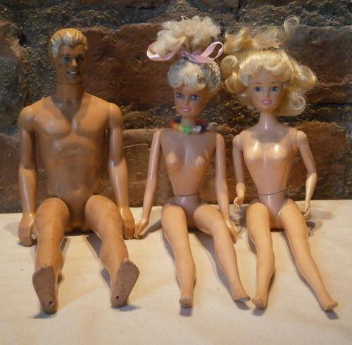 2 Female dolls (not real Barbies) one male doll (not real Ken)
