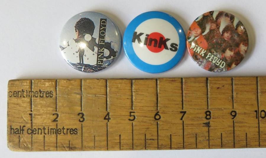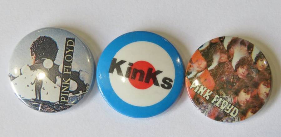 Lot of 3 Pink Floyd and kinks tinnie badges