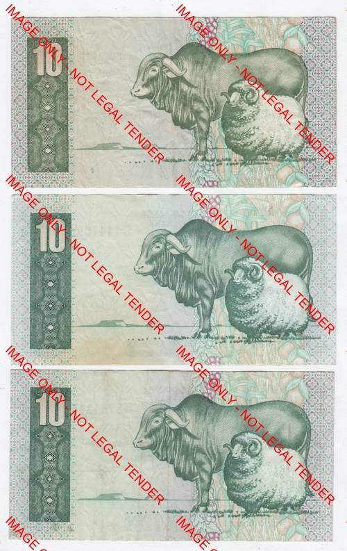 Lot of 3 R10 banknotes - TW de Jongh, GPC de Kock, CL Stals