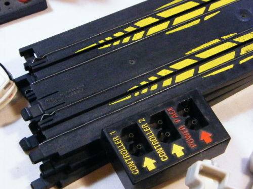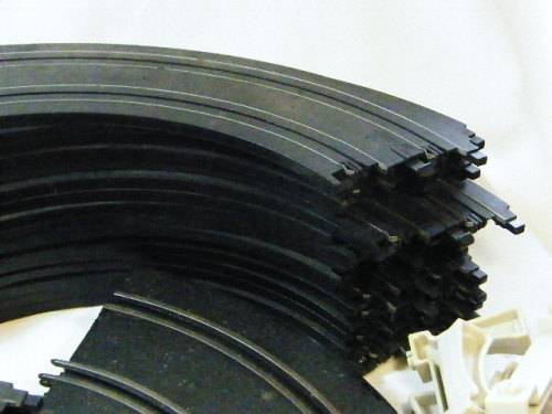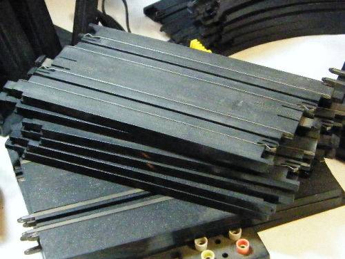 Lot of 38 slot car racing tracks - assorted mostly Marchon with 4 controllers, power supply & 2 cars