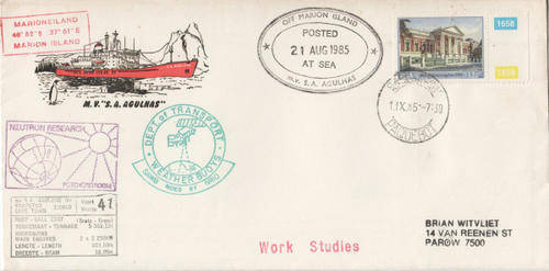 Lot of 4 SA Agulhas covers posted at sea - some darkening & foxing - as per photo