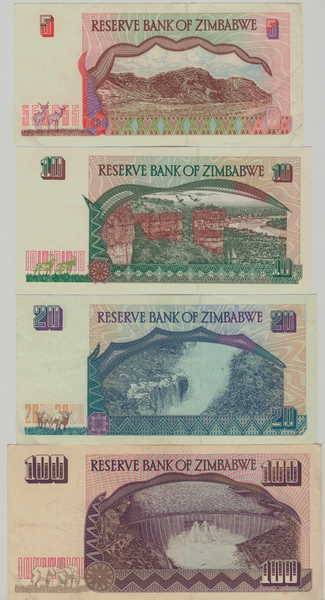 Lot of 4 Zimbabwe banknotes in excellent condition
