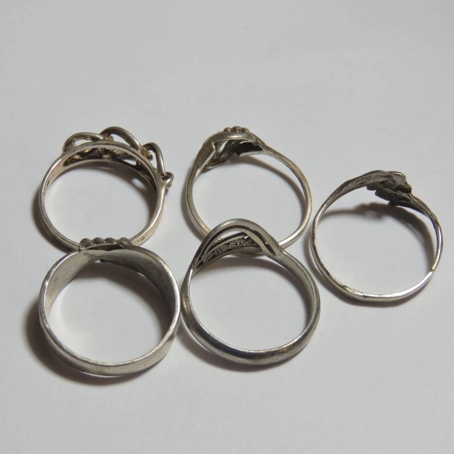Lot of 5 sterling silver rings - Weighs 9,5 grams - Sizes in photos
