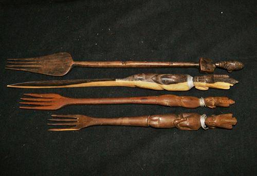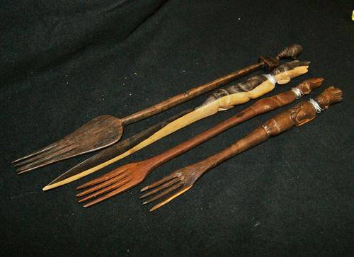 GORGEOUS OLD HAND CARVED EATING / SERVING UTENSILS