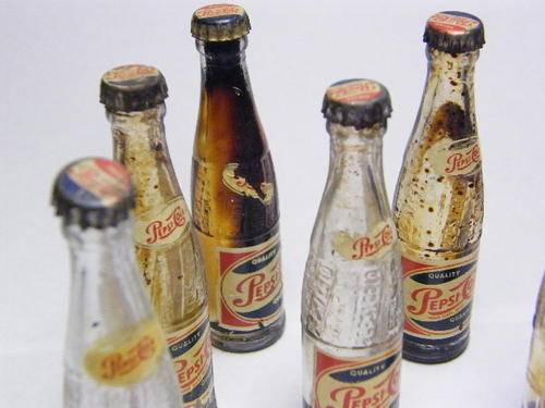 Lot of 6 vintage mini Pepsi bottles - as per photo