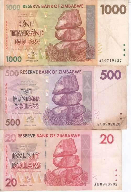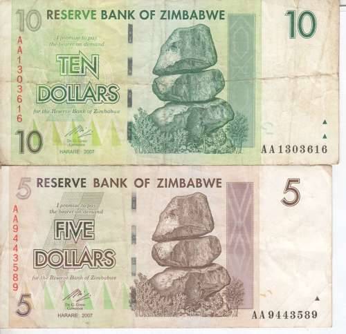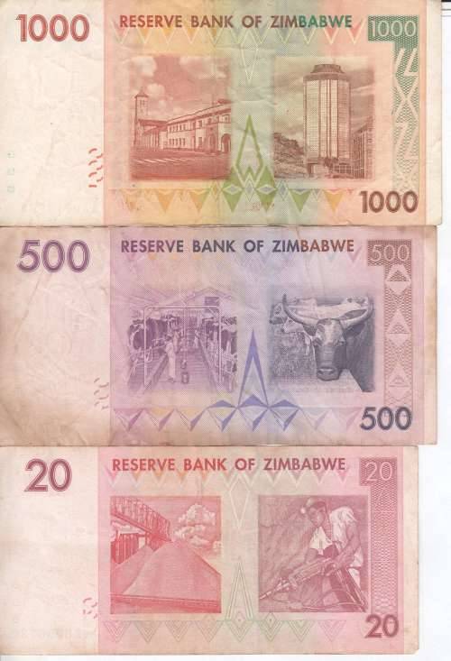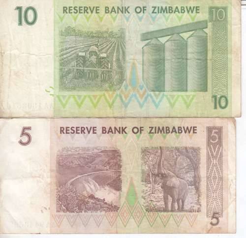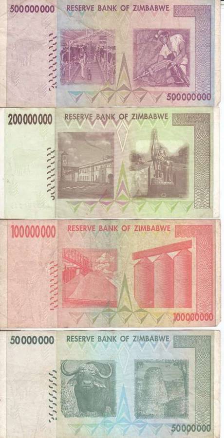 Lot of 9X Zimbabwe banknoes with "Money rock" picture - 5 dollars to 500 000 000 dollars