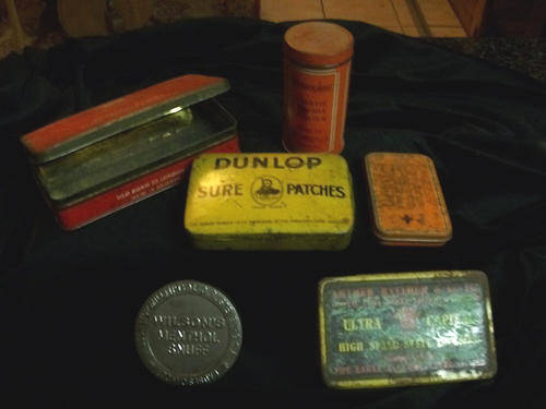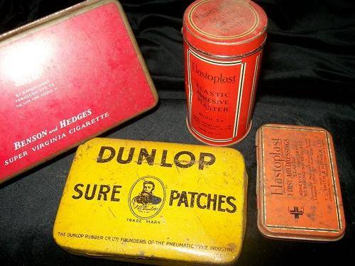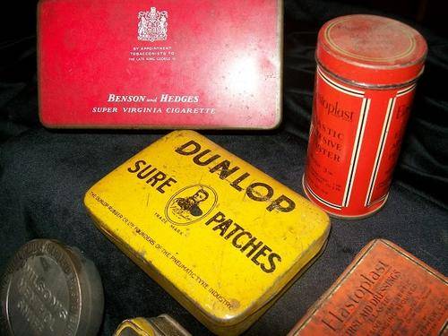 Benson & Hedges, Dunlop Patches, Elastoplast, Snuff Tin and Steel Toolbits tin.