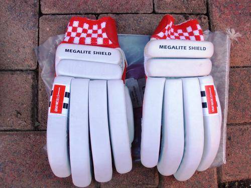 Up for auction is this lot of cricket gear from the 90's. Both pairs of cricket gloves are brand new. The brand new Gray Nicolls Megalite Shield gloves are really high quality, high protection professional gloves that already cost over £120 back in the mid 90's. They come in their original plastic. The Slazenger V100 gloves are also brand new, not as top end as the other pair by some margin but I used that model for the indoor season as they felt comfortable for that format. They come in their original plastic. The 3D Cricket pads are really solid, they show signs of wear but are in good condition all round with the velcro straps still strong. The AS pads are really worn, the velcro straps is in poor condition, but they are very light and nice to use for indoor cricket or light practice. The Kookaburra bat never got used much, that is why it is still in a good condition. When you play with it you can feel it is not a high end bat, however someone else might like it and it's great for wet conditions as it has a been treated with some kind of protective material all around. It comes with a nice Kookaburra cover. The Lazer bat is really just for nostalgic purposes or perhaps a light training session. It is the 5 Star version, top of the range at the time, the choice of the Transvaal team at the time, however it has seen so many cricket balls hit that the willow has split badly at the bottom and the "sweetspot" is really spongy.